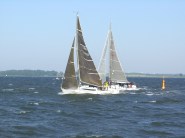 Die eigentlich geplante Teilnahme an der Stralsunder Segelwoche 2012 vom 1.-3. Juni haben wir in diesem Jahr kurz zuvor abgesagt, weil wir das Wochenende besser noch zum Training für die bereits in sieben Wochen stattfindende Weltmeisterschaft nutzen wollten. Wie sich herausstellte, war das die richtige Entscheidung, denn bei der Segelwoche mussten beide Streckenwettfahrten (Rund Rügen / Rund Hiddensee) wegen Starkwind abgesagt werden. Statt dessen wurden kurze Dreieckskurse auf dem Sund vor Stralsund gesegelt.