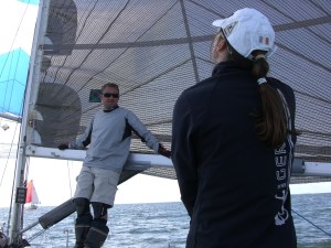 Am Sonntag stand dann eine lange Kreuz bei Mittelwind quer über den Bodden zurück nach Greifswald auf dem Programm. Auch dabei gelang uns ein 5. Platz.