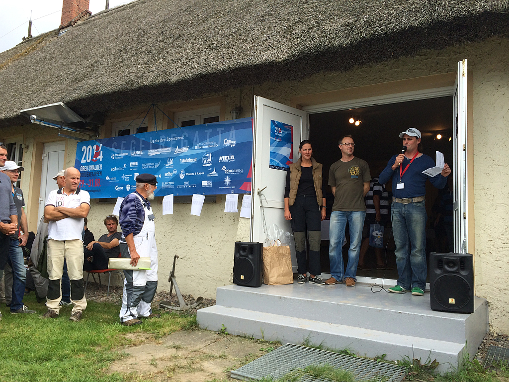 Swash Buckler startete in der Klasse „Yardstick 1“. Beim ersten Rennen am Freitag Abend von Greifswald nach Lubmin waren wir am Start nicht ganz pünktlich und mussten eine Aufholjagd von hinten starten, was mit Platz sechs endete. Am Sonnabend ging der Kurs kreuz und quer über den Bodden bis Lauterbach. Dabei blieben wir mit unseren drei Schwesterschiffen Matchbox, Hoppetosse und Drei auf X immer eng zusammen, mit diversen Führungswechseln. Diesen Lauf entschied Hoppetosse für sich, mit einer halben Bootslänge Vorsprung vor uns 😉 In der Tageswertung war das Platz fünf. Die letzte Etappe führte mit einer langen Kreuz zurück nach Greifswald, dieser Kurs war mit einigen Windlöchern und -drehern vermint. Matchbox schaffte es am schnellsten nach Hause und kam auf Platz 2 der Tageswertung, für uns kam Platz 4 heraus.