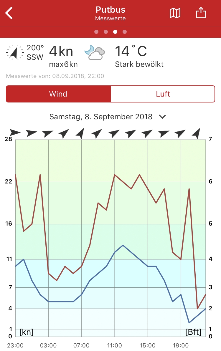 Dazu kommen permanente Dreher, die Windrichtung pendelt stetig zwischen 220 und 260 Grad. Aber was soll’s, irgendwie wird’s schon gehen.