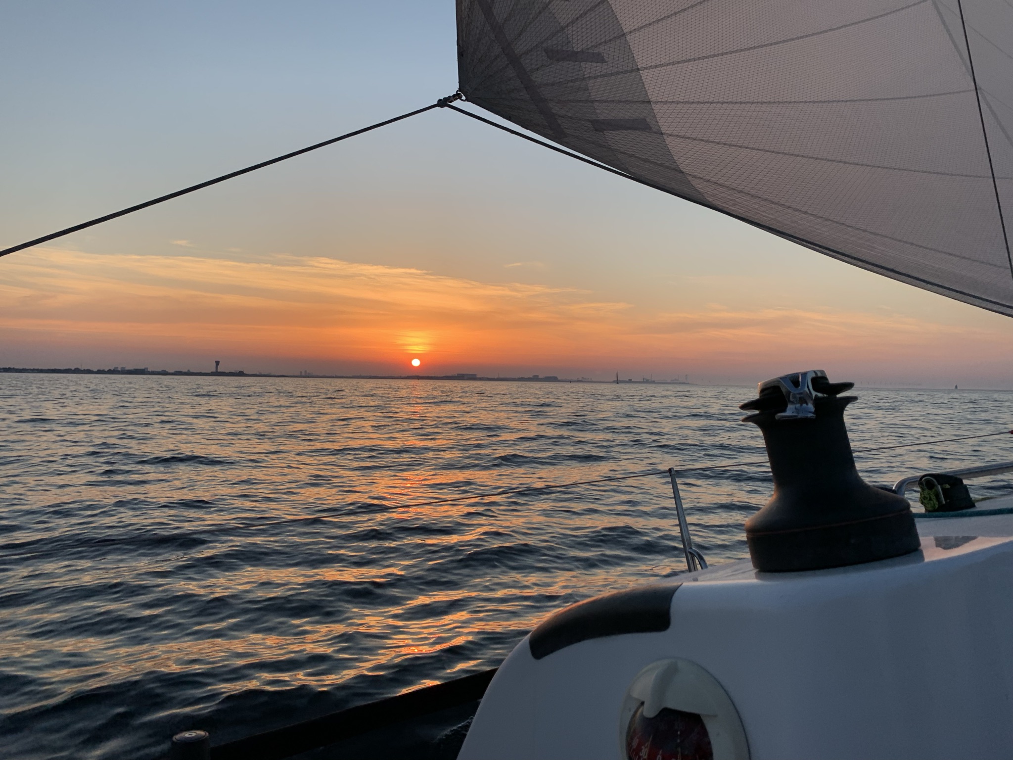Ab hier geht es auf einem Amwind-Kurs bis zur Insel Sejerø und weiter den großen Belt hinunter, zunächst noch mit dem Code, später mit der Genua. Die Große-Belt-Brücke passieren wir nach einem traumhaften Sonnenuntergang gegen Mitternacht, immer noch auf zweiter Stelle hinter Krackemut liegend.